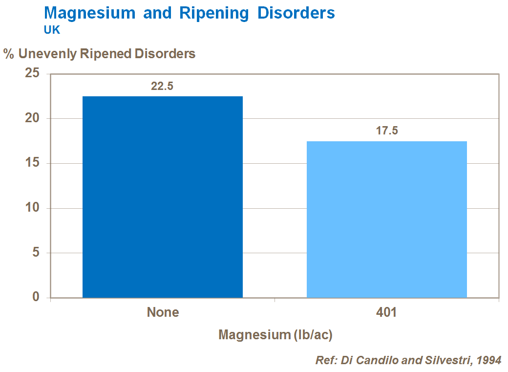 Le magnésium est particulièrement important pour l'homogénéité de maturation et la formation correcte des fruits.