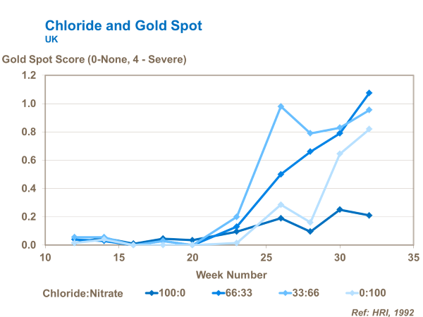 Un programme de nutrition équilibré, notamment des apports appropriés de potassium et de calcium réduit son incidence. L'utilisation d'engrais à base de nitrate au lieu de chlorure réduit le risque de survenue de la moucheture dorée des tomates.